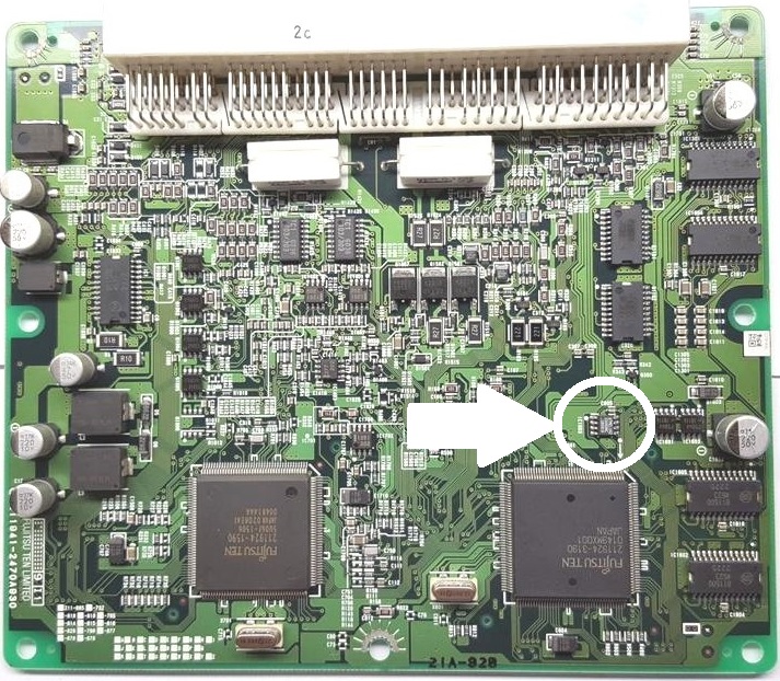 La puce est une EEPROM 25080 pour l’ECM du moteur 1AZ-FE (photo ci-dessous). Si votre ECM est pour le 1AZ-FSE, il s’agira d’une EEPROM 25040.